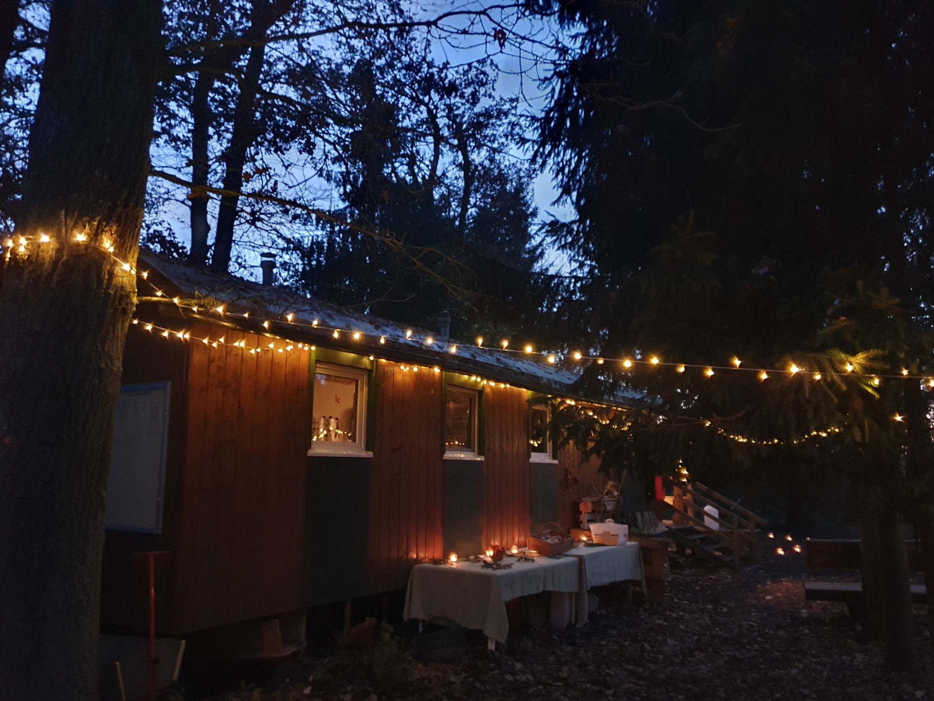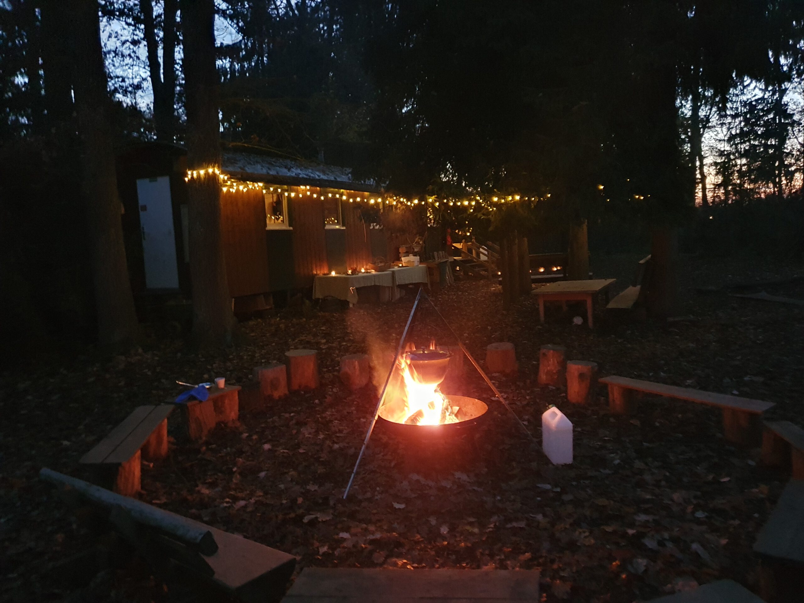 Endlich ist es soweit, der Tag der Martinsfeier ist gekommen. Tagsüber sind wir schon ganz aufgeregt und üben unsere Theateraufführung und unsere Lieder. Martin bringt uns zum lachen mit dem Spruch von dem Riese Timpetu und dann ist der Kindergartentag zu Ende. Abends treffen wir uns dann am Jugendzentrum, singen gemeinsam und zünden die Laternen an. Ach wie schön das leuchtet und wie herrlich es ist mit den Laternen zum Waldplatz zu laufen. Dort angekommen wartet Marina am Feuer und der Punsch duftet fein. Es werden Gänse geteilt, Punsch getrunken und die Aufführung war natürlich ein voller Erfolg. Ja ein gelungenes Fest war das.