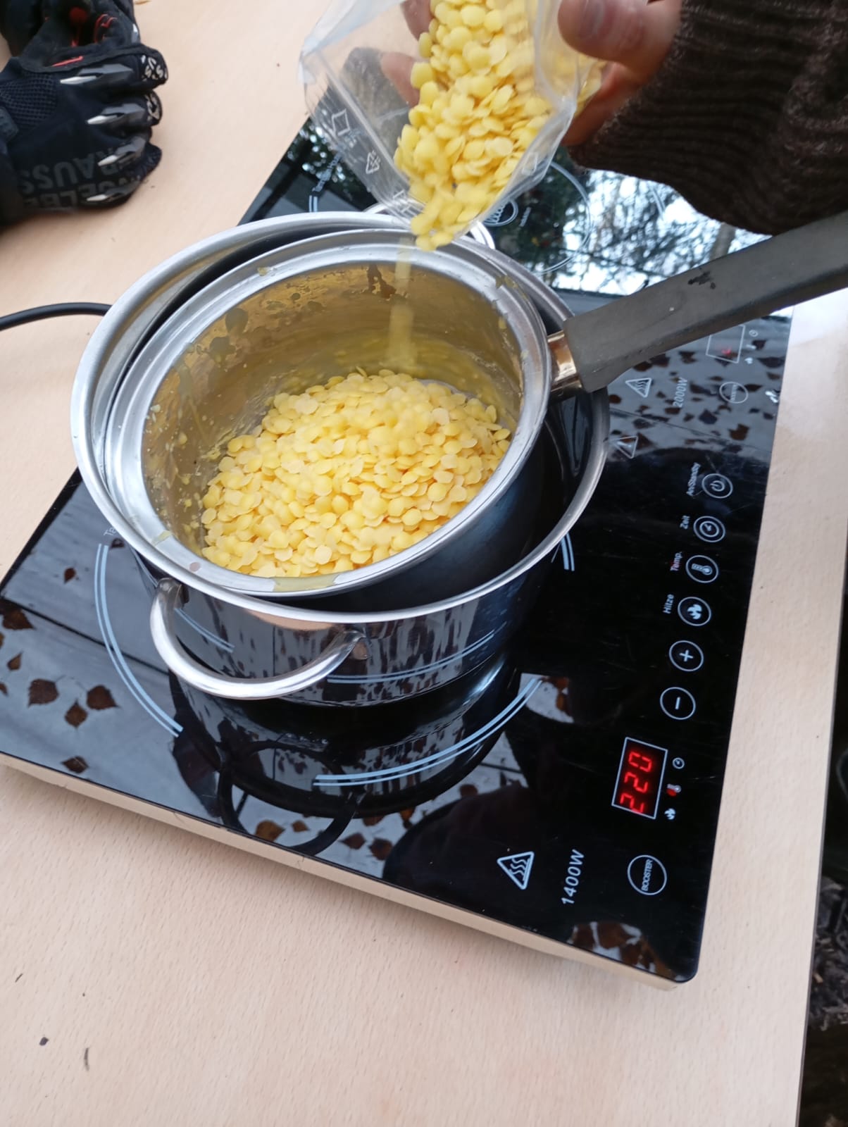 Ebenso verlockend war der Duft aus der Küche: Wir haben Waffeln mit Honig gebacken – ein süßes, goldenes Vergnügen, das alle begeistert hat. Die gemeinsamen Backmomente stärkten nicht nur den Teamgeist, sondern auch die Vorfreude auf die winterliche Jahreszeit.