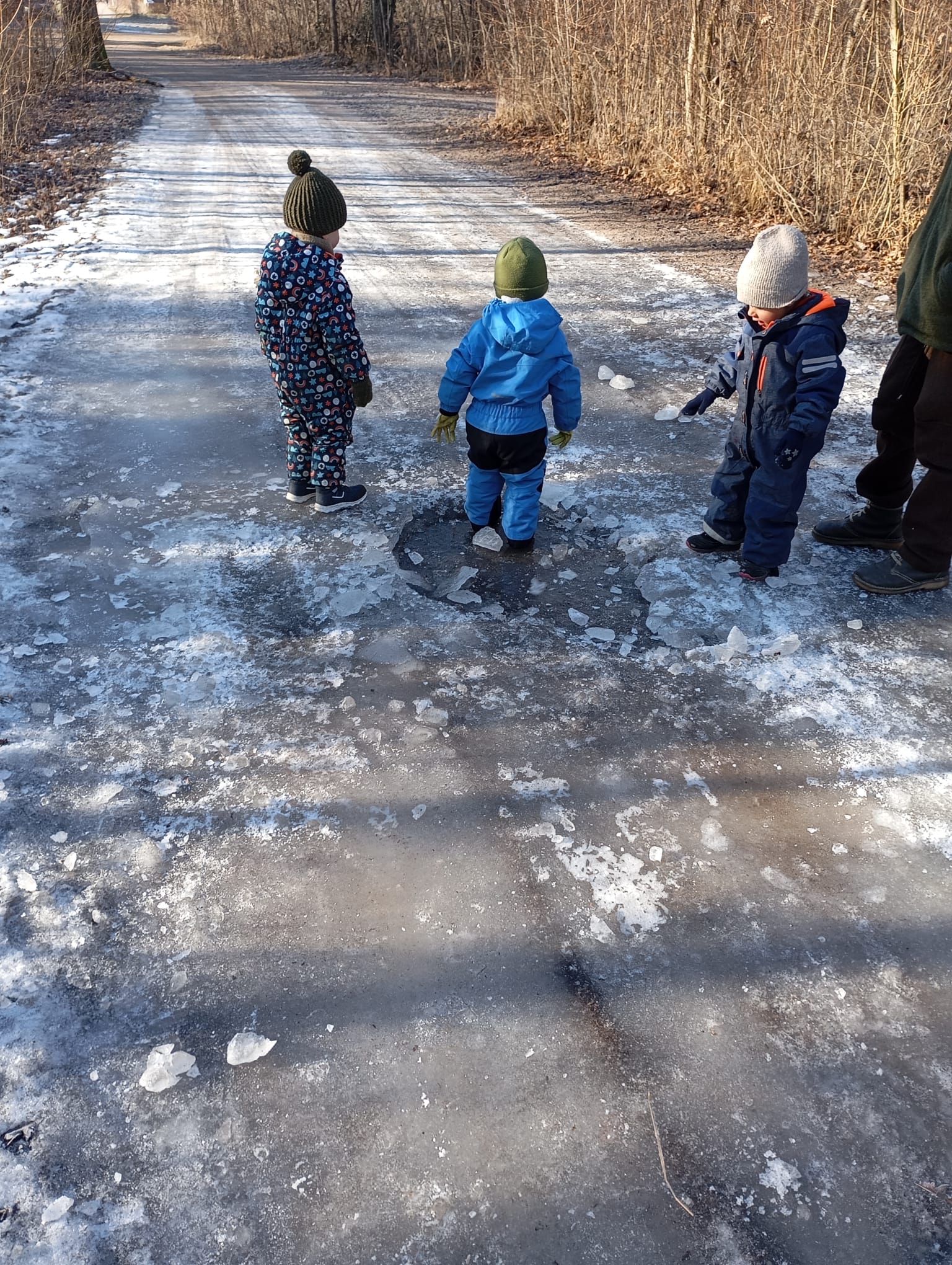 Außerdem waren wir auch draußen unterwegs. Dabei mussten wir besonders achtsam sein, denn die Wege waren stellenweise sehr glatt gefroren. Rücksichtnahme und vorsichtiges Gehen standen hier im Vordergrund.