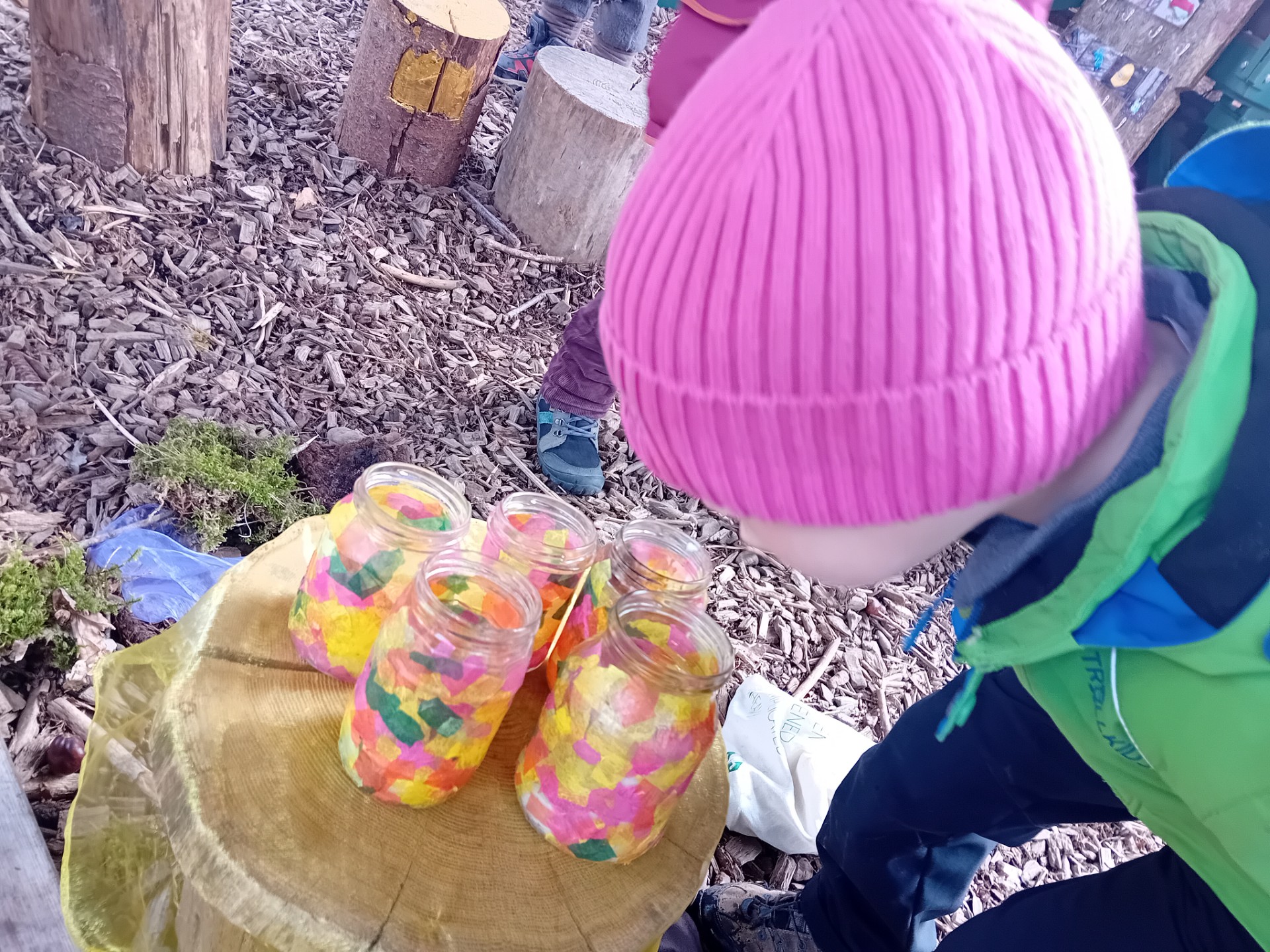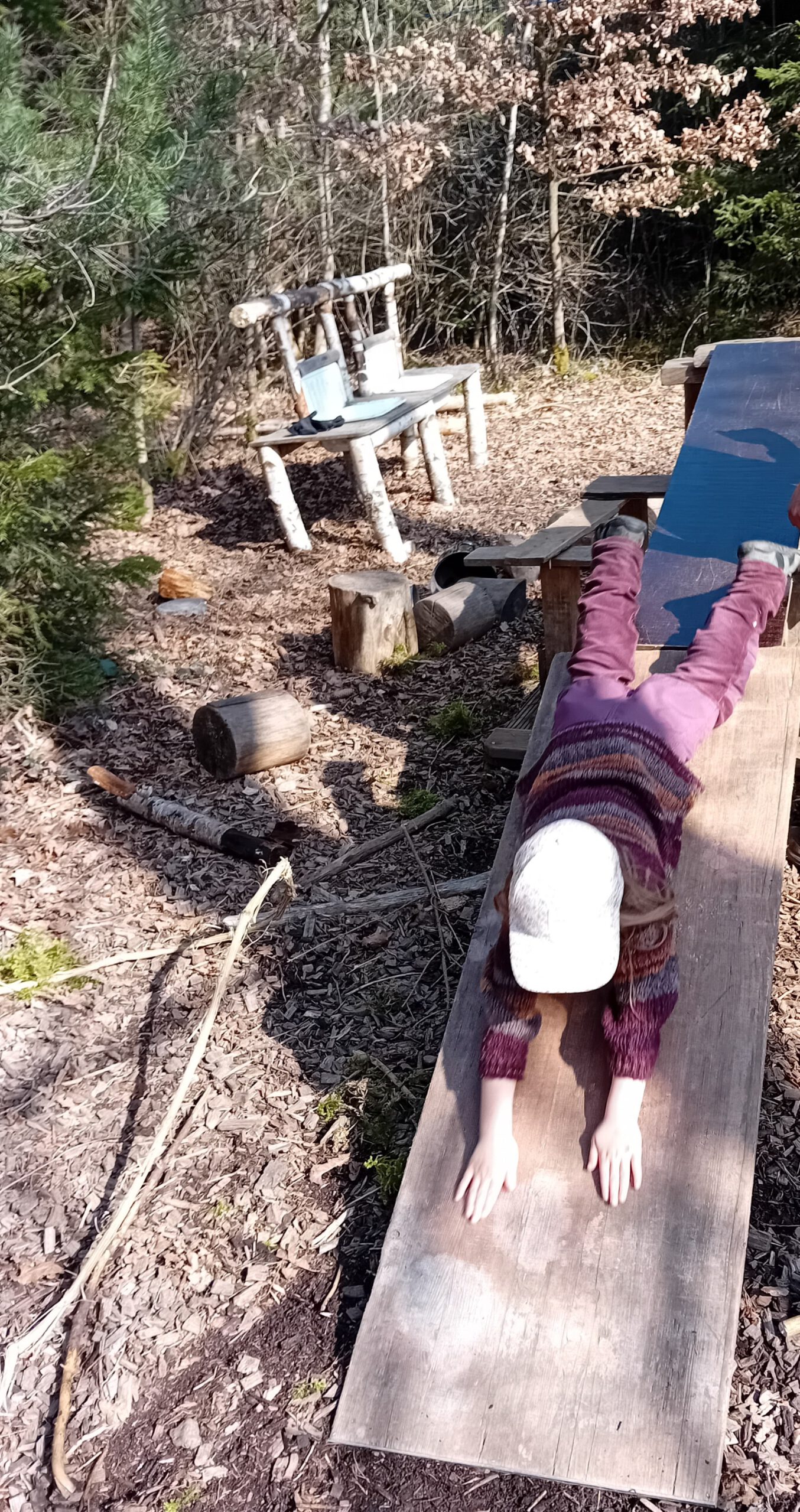 Zwei Märzkinder werden diese Woche gefeiert. Sowohl am Montag als auch am Dienstag werden Geburtstagslieder geträllert, gratuliert, Geschenke verteilt und Kuchen verspeist. Oskar und Hazel sind beide fünf Jahre alt geworden, herzlichen Glückwunsch ihr Beiden! Wir basteln mit Ela tolle Schmetterlinge aus Stöcken und Wolle, die sehen soo schön aus! Ein Ausflug zum Fichtenwald im Sonnenschein am Dienstag, wie herrlich! Wir liegen gemütlich auf der Decke, spielen verstecken und besuchen das Moosland. Wir entdecken die ersten Waldameisen, treffen die Minis und kümmern uns ganz lieb um die Kleineren, die kennen sich nämlich im Fichtenwald noch nicht so gut aus wie wir. Martin hat ein schönes neues Lied mitgebracht. „Kätzchen ihr der Weide, wie aus grauer Seide…“. Ja die Weidenkätzchen spitzen heraus, der Frühling kommt und bald beginnen auch die ersten Vorbereitungen für unser Osterfest. Wir bauen uns aus Brettern eine tolle rutsche und jeder darf mal hinuntersausen, hui. Am Donnerstag gibt es wieder gruppenübergreifende Angebote. Ein paar von uns gehen mit Martin in den Fichtenwald und spielen Räuber und Gendarm, was für ein Spaß! Wir anderen gehen zu den Erdhügeln und lernen dort das Buch: „Das krasseste Tier der Welt“ kennen. Ja und das krasseste Tier der Welt ist ein Regenwurm und natürlich haben wir schon welche gesichtet. Am Freitag sammeln wir junge Brennesseln und kochen Nudeln mit Brennessel-Sahne-Sauce. Soo lecker ????! Wir stempeln erste Osterhasenbilder und dann ist unsere Woche auch schon wieder vorbei. Es war wie immer wunderbar. Liebe Grüße, eure Mooszwerge