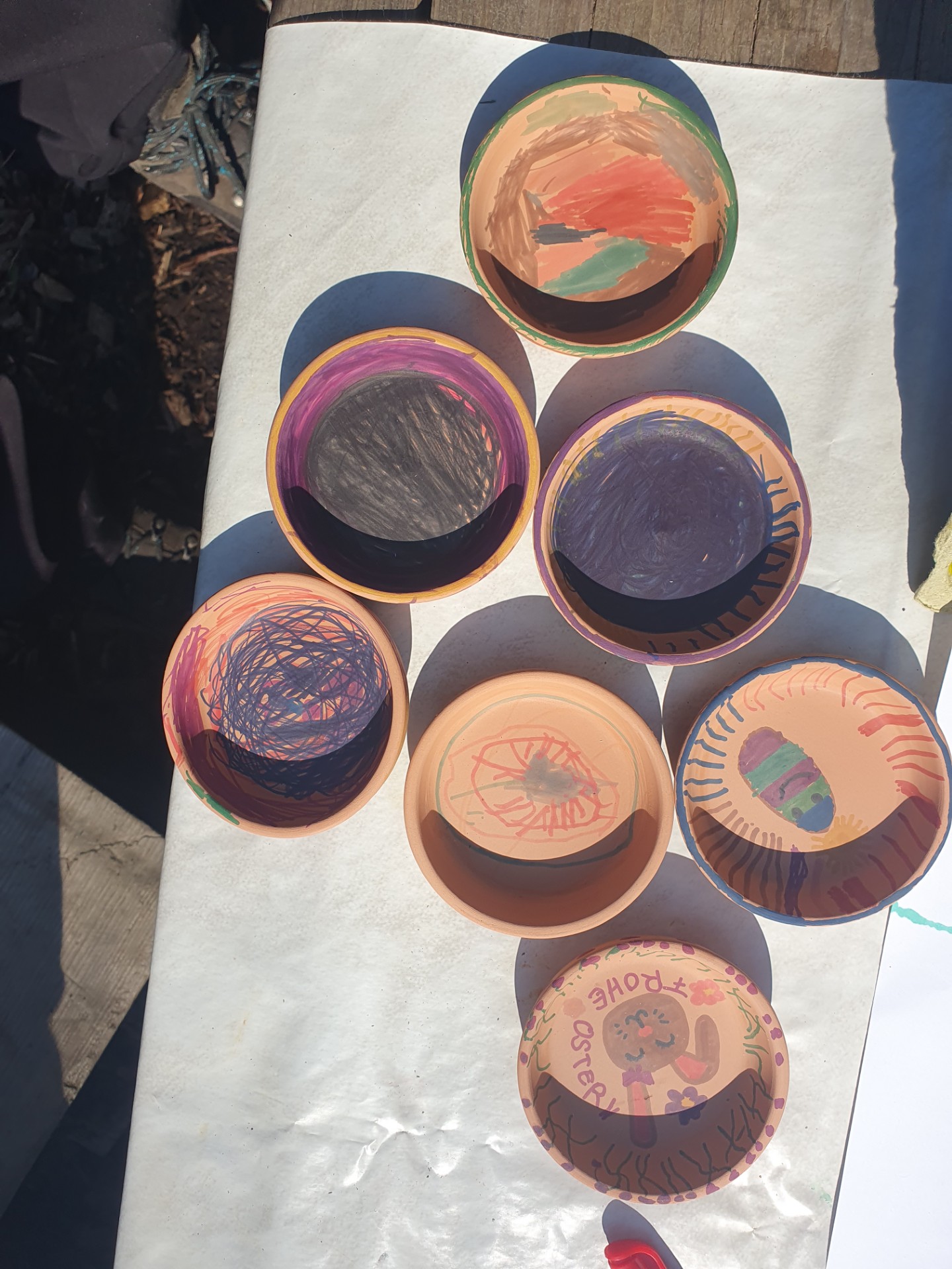 Also bemalen wir noch kleine Schälchen und säen Kresse an, um uns die Zeit zu vertreiben.